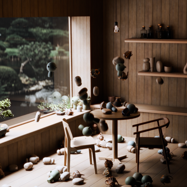 Blender 4.4 a | Experiment: RBD in Geometry Nodes | Chaos Cafe | 6 Rendered in CYCLES.